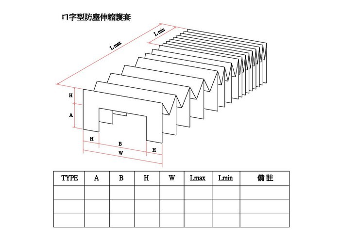 本產品屬訂製品,寬度及長度可依設備需求製作。摺高H有:10.15.20.25.30.35.40.50mm.........等多項規格。